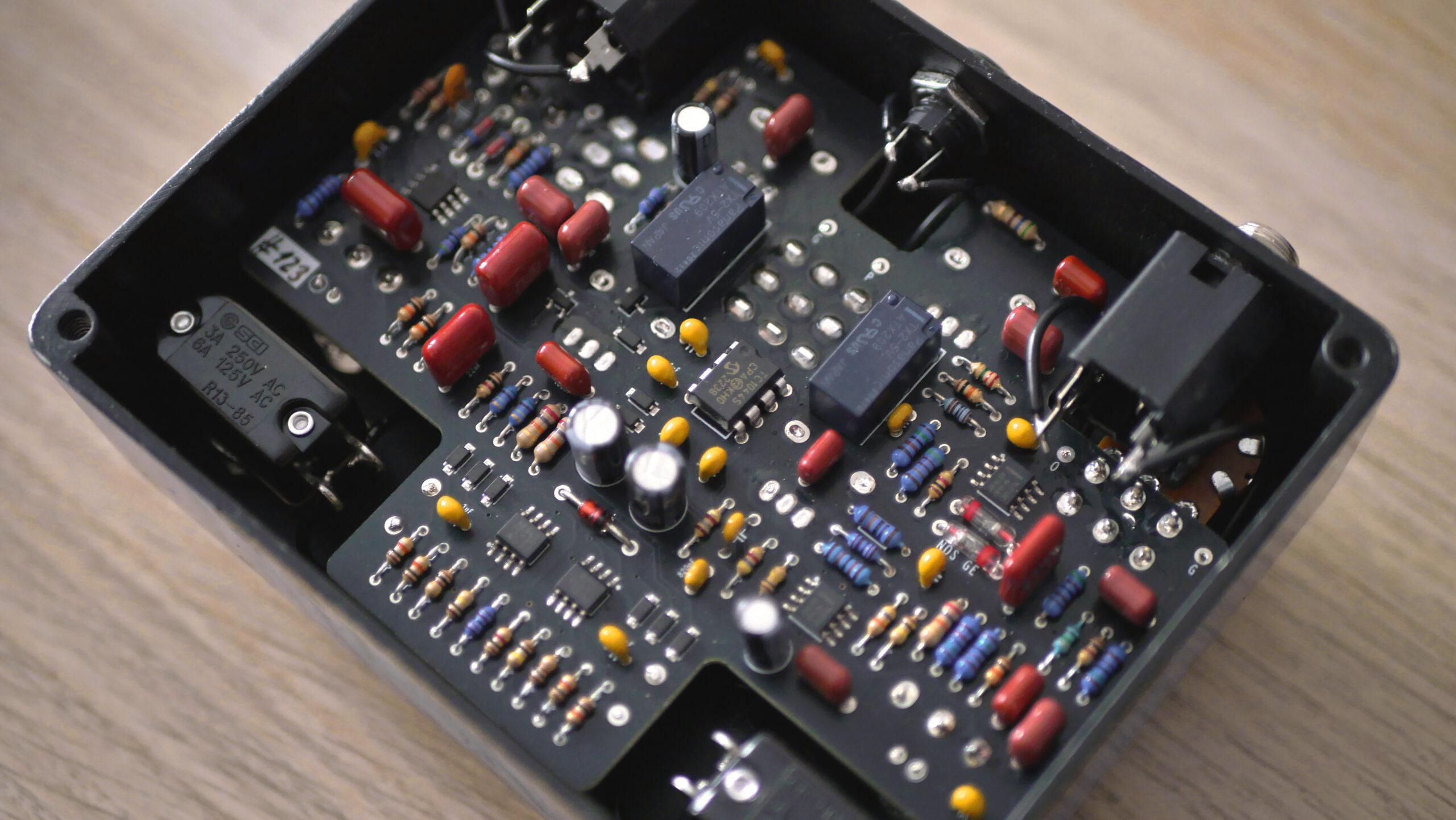 Of course, it retains all the iconic features of a Klon-style circuit, including Soviet NOS germanium diodes, a charge pump chip that increases the internal voltage from 9V to 18V, and a dual gain pot that splits and controls the clean and dirty signals.